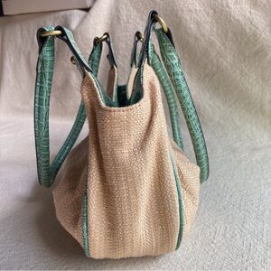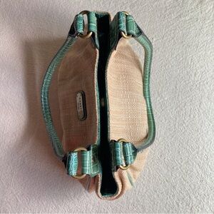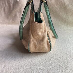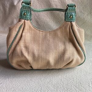 Rosetti “New York” Natural Woven & Teal Faux Leather Trim Handbag like new