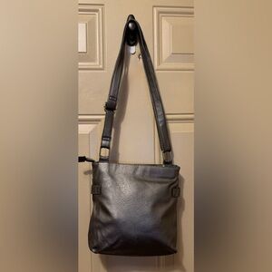 Rosetti Pewter Metallic Vegan Leather Crossbody Bag with Adjustable Strap