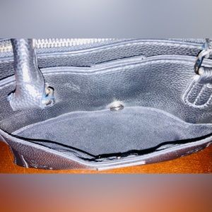 The purse with a gazillion compartments! This purse has so many compartments that every thing can have its own individual home! Floral design on front of purse. Black in color.