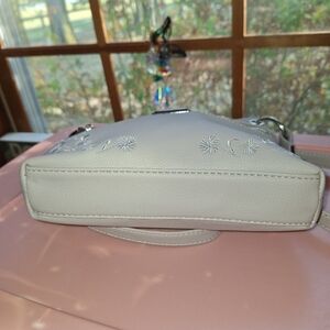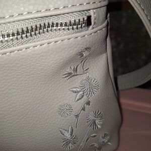 Rosetti Vegan Leather Crossbody NWOT soft gray colorway with embroidered floral detail 10" x 8.5"