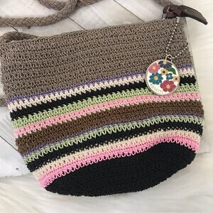 Rosetti Vintage Woven Knit Crossbody Striped Bag w Charm