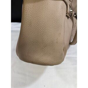 Features a shoulder bag style with silver stud like and buckle design. Its neutral beige color ensures it pairs well with any outfit, making it an essential accessory for any wardrobe. Measurements are length 15.5”, depth 5”, height 10”, and straps 11”. Good condition: last pictures show signs of wear. This item has been cleaned, sanitized and deodorized. Although our items get cleaned, they will need additional cleaning.