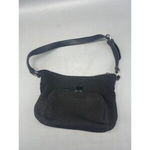 Rosetti purse handbag black crochet 2 front one back pocket strap zipper READ
