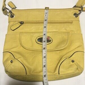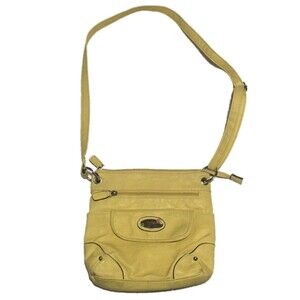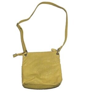 Rosetti purse yellow faux leather silver flower logo adjustable shoulder strap