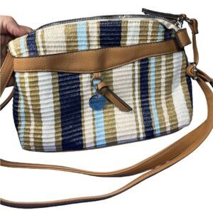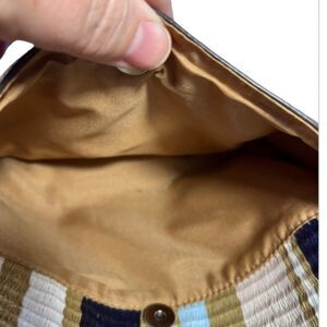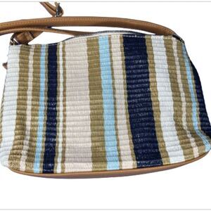 Blue and tan woven striped back Adjustable strap Spring summer warm vacation vibes Great condition