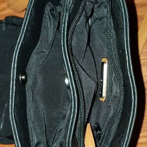 Rosetti Women’s Mini Black Tan Faux Leather Crossbody Bag Front Wallet