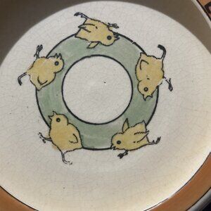 ANTIQUE ROSEVILLE POTTERY BABY'S PLATE CREAMWARE CIRCA 1920...approx 8" in diameter baby chicks ducks ...has crazing and overall wear ...see all pictures for condition
