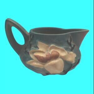 Roseville Pottery Blue Magnolia Creamer Or Small Pitcher 4-C 2.5" Tall