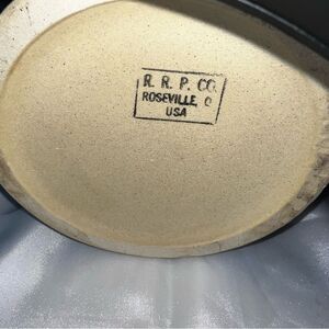 This Roseville Pottery crock features a charming heart motif in soft pink and blue. A perfect accent for any home decor.