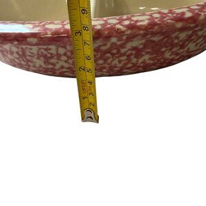 This divided stoneware dish blends function and timeless appeal. Its pink and white spongeware design adds a distinctive touch to home dining or kitchen decor. Comes from a smoke free home.