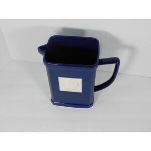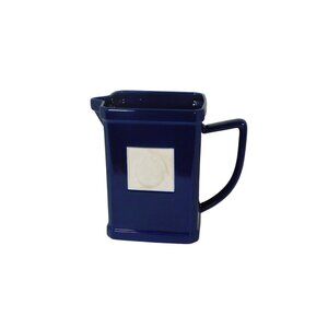 Roshco Tile Ware Collection ceramic pitcher in deep cobalt blue, featuring a raised white ceramic fruit tile inset. This 8.5" tall pitcher blends rustic charm and modern simplicity — perfect for farmhouse kitchen decor, serving drinks, or as a floral vase.