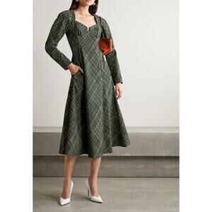 Rosie Assoulin “Don’t Call Me Sweetheart” Checked Cotton-Blend Midi Dress Dark Green Plaid A-Line Fit Flare Size 8