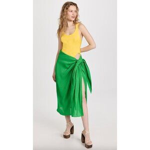 Rosie Assoulin Sarong Cut Out Midi Dress Green Yellow Womens Size 8