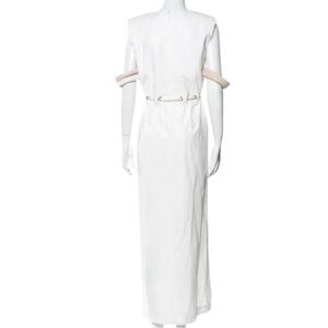 This stunning poplin maxi dress by Rosie Assoulin showcases a chic tie front and arm bangles. This sleeveless dress is perfect for vacations, beach outings or any summer party.