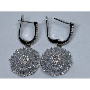 Rosie Hill Designs SE181W Earrings Cubic Zirconia Sterling Silver. Cubic Zirconia Sterling Silver Dangling Cluster Earrings. Crafted from shimmering cubic zirconia and sterling silver, these earrings evoke elegance with their drop