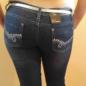 They also deliver an elegant and simple gesture with bling studs on the front and back pockets and embroidery.