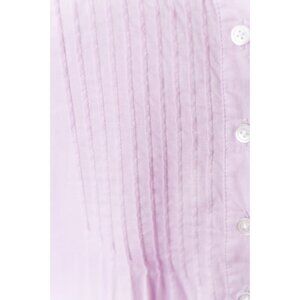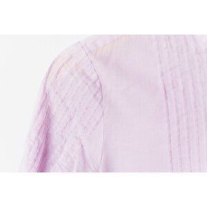 This Rosie Pope maternity top in size Medium features a solid pink color with a crew neckline and long sleeves. Made from 100% cotton, it has a relaxed fit and casual sleeve style, suitable for travel, casual wear, or business occasions. The button-up closure and pleated accents add a stylish touch to this lightweight and unlined blouse, perfect for the summer and spring seasons.