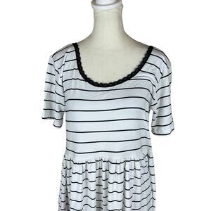 Elevate your maternity wardrobe with this Rosie Pope short sleeve empire waist slip. The white striped design and round neckline add a touch of sophistication to this babydoll style piece. Perfect for sleepwear and lounging, this one piece slip is made for comfort and style. The size M slip is perfect for women looking for a comfortable fit.