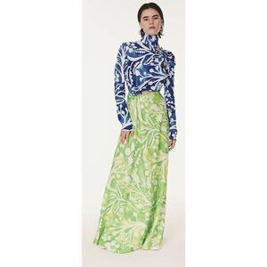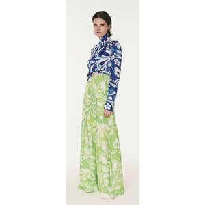 Maxi dress with several delightful twists. With long sleeves, a high neck, and our mesmerizing coastal cady print, the floor skimming cocktail dress features knotted details and subtle cutouts at the collarbone and waist.