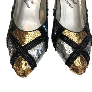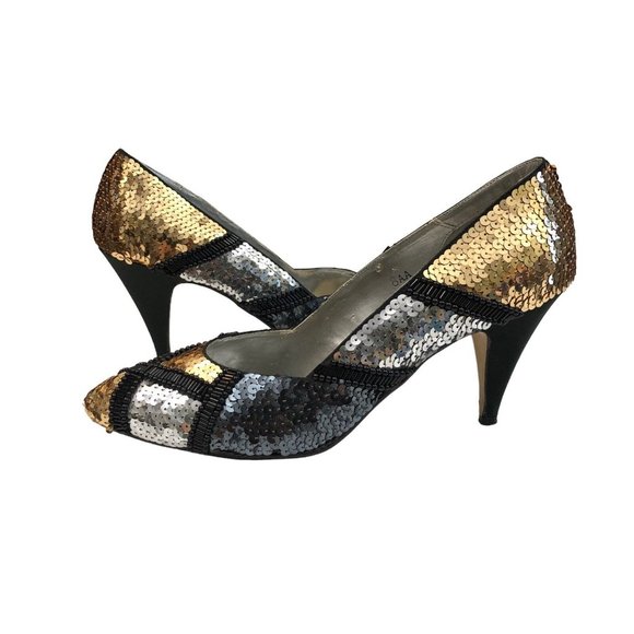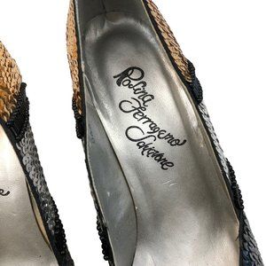 Rosina Ferragamo Schiavone Vintage 60s 70s Gold Silver Sequin Party Pumps Heels.