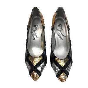 Rosina Ferragamo Schiavone Vintage 60s 70s Gold Silver Sequin Party Pumps Heels