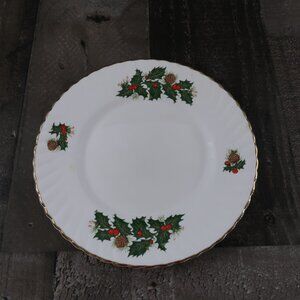Rosina Fine Bone China December 8" Salad Plate Mistletoe Holly Christmas Holiday
