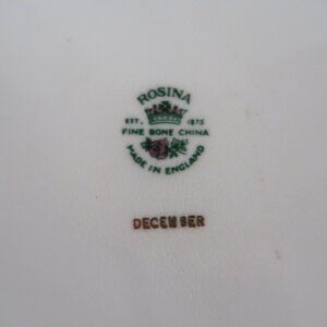 Rosina Fine Bone China Made in England "December" gold trimmed 8" salad plate.