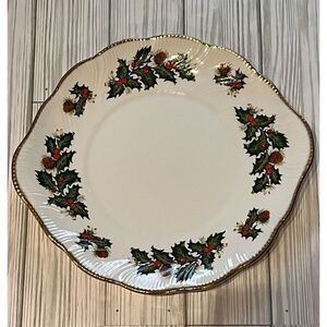 Pretty porcelain plate with a Christmas holiday theme by Queen's Rosina China Co, Made in England!