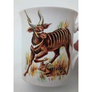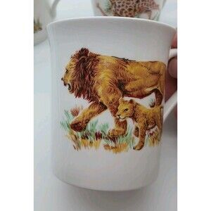 Rosina Set 4 Mugs Bone China African Wildlife Babies Lion Zebra Bonho Giraffe