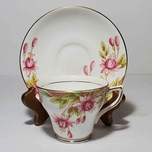Rosina Teacup and Saucer Pink Flowers Vintage