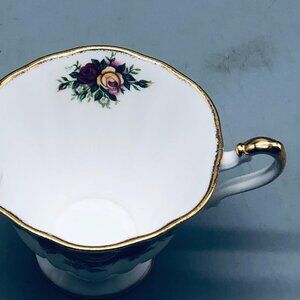 Rosina tea cup 1010 bone China made in England white floral pink gold trim READ