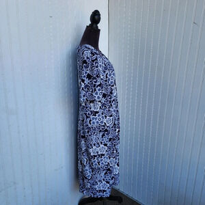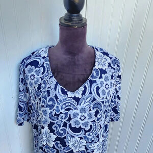 Ross Navy Blue White Textured Floral Stretch Tunic Short Sleeve Dress Midi XL
