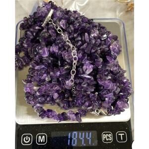 Ross & Simmons 16in Layered Amethyst Gemstone Necklace & Sterling Clasp 184.4g