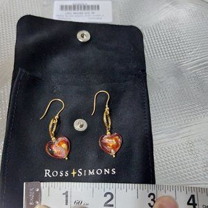 Ross Simons Italian Murano Glass Gold Heart Drop Earrings in 18kt Gold Over Sterling