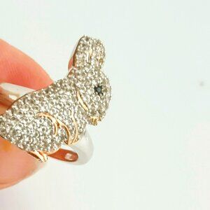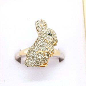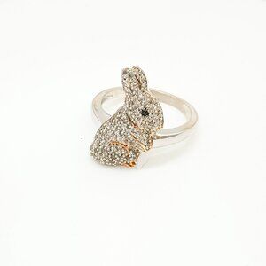 Ross Simons Sterling Silver Bunny Ring 9.75 Two Tone White Topaz Pave