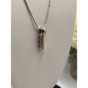 Ross Simons sterling bar pendant with mother-of-pearl cabochon surrounded by sparkling and cubic zirconia with matching earrings.