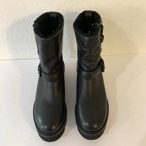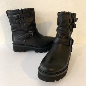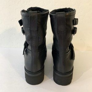 NEW Ross & Snow Lucky Boots Leather Shearling Buckle Moto Booties Black Size 10