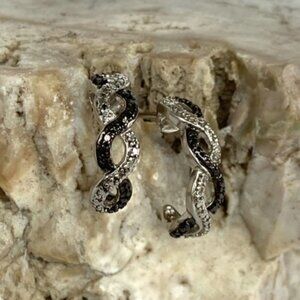 Ross-Simons Sterling Silver 925 & Blackened Twisted Single Diamond Half Hoop Earrings