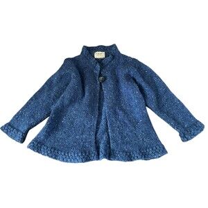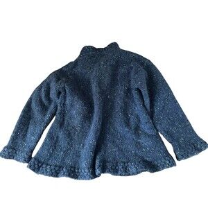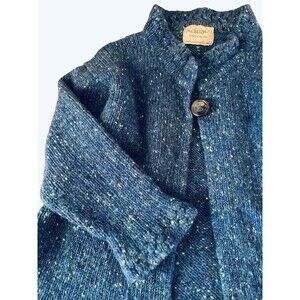 Rossan Donegal Ireland Irish Wool Cardigan Sweater Womens Blue Hand Loomed M L
