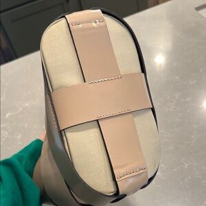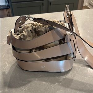 This tan shoulder bag features a structured design that offers a modern and sophisticated look. Its sleek finish and contemporary style make it a versatile accessory for any occasion.