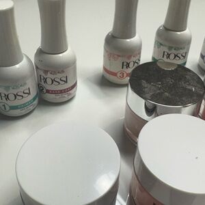 Rossi dipping powder set in various shades. Includes multiple jars for nail art.