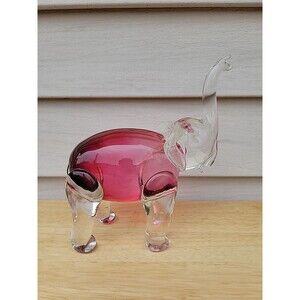 Standing at up to 8 inches tall, this elephant figurine is perfect for display in any room of your home. The beautiful cranberry-colored glass and intricate details make it a true work of art. Add this piece to your collection today and enjoy the beauty that it brings to your space.