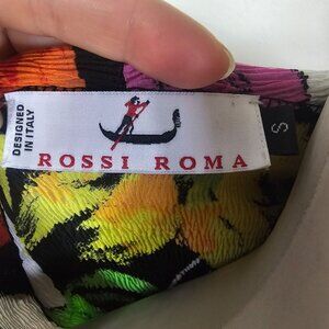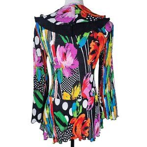 Rossi Roma Crinkle Floral Colorful Jacket/Blouse S Abstract Artsy Vibrant Topper