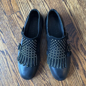 Rossi Women’s 5.5 Loafer with fringe and studs Suede Small Heel Buckle Stretch