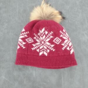 Rossignol Beanie Adult Red Fair Isle Wool Angora Blend Pom Ski Snowboard Stretch