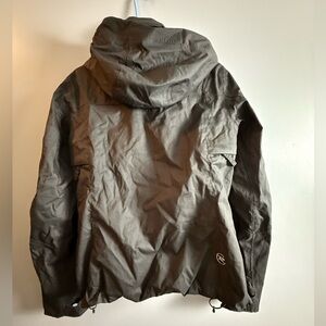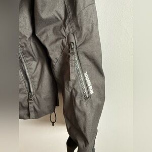 Ventilation and Fit: Includes zip pit vents, a powder skirt that can be snapped away, a cinch hem, and adjustable cuffs.