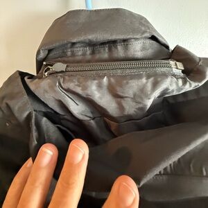 Color and Closure: Black, with a full zip, hook & loop, and logo snap closure.