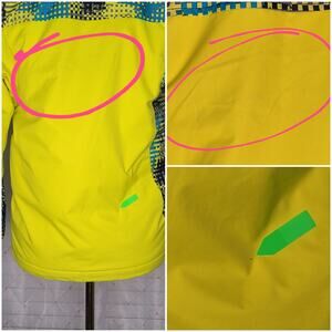 Faint discoloration & stains on the front and back yellow areas of the jacket.