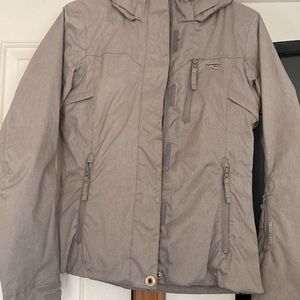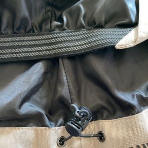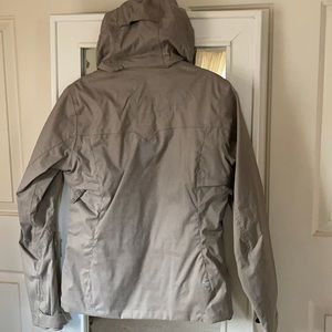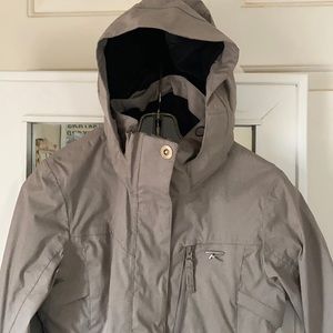 Lined w snow skirt & detachable hood, this is an uninsulated Shell Jacket