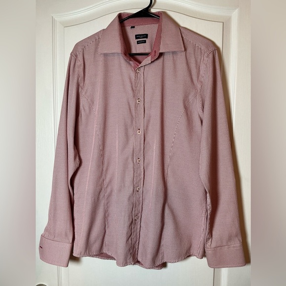 Upgrade your style with this elegant red dress shirt. Ideal for formal events, it combines comfort with sophistication. Excellent condition. Please see pictures for details and measurements.